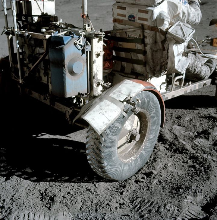 “Okay; let me round up John Young. He stepped out for a second. We’ll have him here in a minute. Might as well let the resident expert on fenders talk. …Okay; I’ll now turn the microphone over to Captain Young.” On Apollo 16, Young had broken a fender off his Rover, and had a good perspective on how serious the problem would be without a fix. As mentioned previously, however, Support Team member, Terry Neal, had done the real work of working out a fix.