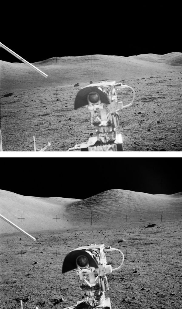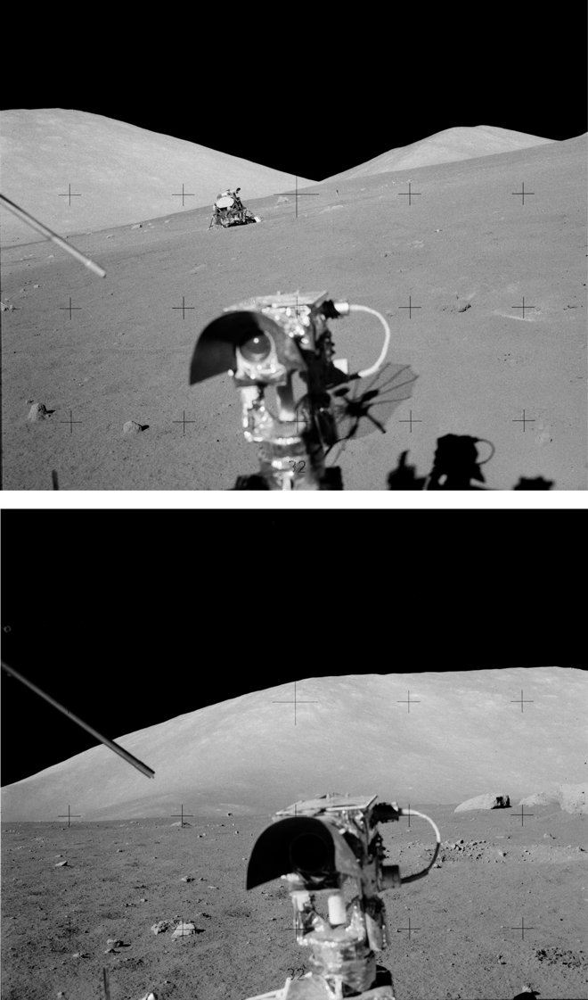 “Yeah, we’re at 087/6.0,” Cernan read. “I think that’s probably [close]. Let me get up on the top [of this rise], here.”