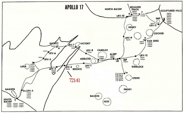 See Jones, E., Apollo Lunar Surface Journal, Apollo 17, EVA-2 Wake-up, GET 137:30:56, annotations, et seq. ↑