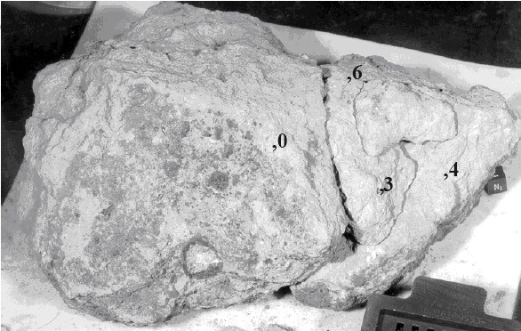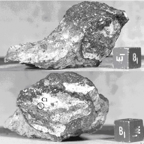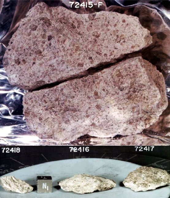 Phipotts, J. A., S. Schumann, C. W. Kouns, R. K. L. Lum, and S. Winzer, 1974, Lunar Science Conference 5, pp. 1255-1267; Miller, M. D., R. A. Pacer, M.-S. Ma, B. R. Hawke, G. L. Lookhart, and W. D. Ehman, 1974, Lunar Science Conference 5, pp. 1079-1086; Basu, A., D. Des Marais, J. M. Hayes, and W. G. Meinshein, 1975, Integrated investigation of the mixed origin of lunar sample 72161, The Moon, 14, pp. 129-138. ↑