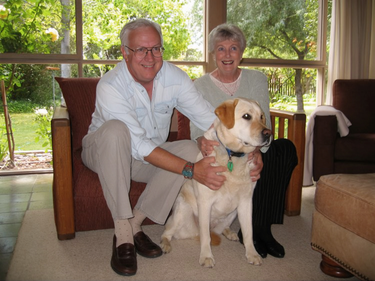 Eric with the star of his life, Dianne, and their faithful Labrador, “Tilly”, in their home at Albury, NSW, Australia. (Photo by Ken and Angele Glover, 2004. Courtesy of the ALSJ).